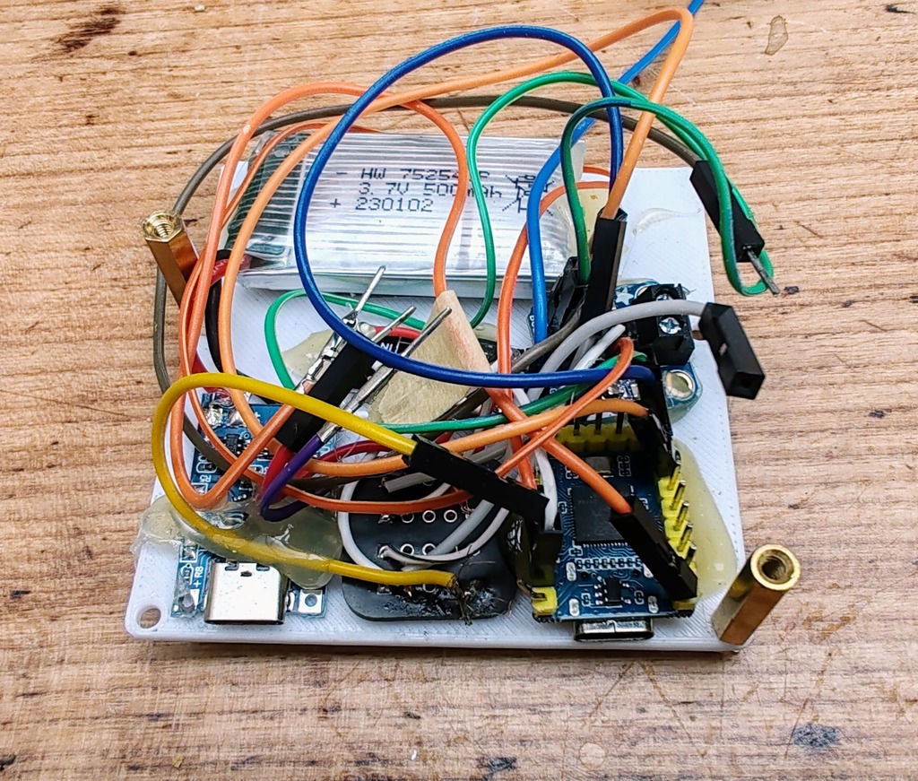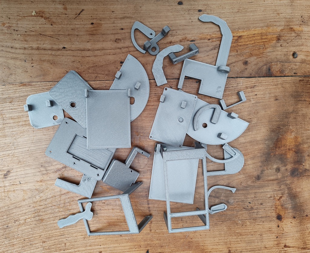 This first version was "good enough" as they say in Yonne, but using brass hinges screwed then glued with a hot glue gun didn't seem like an elegant solution to me. After watching dozens of tutorials dozens of times, I finally designed a hinge without brass and without glue, in pure plastic. Victory. I also reworked the electronic board to take it from a magma of wires to a somewhat clean board. All these efforts finally led to a first showable prototype. Immediately followed by another slightly smaller prototype that would do perfectly. I was finally able to gather all my ideas in a first video modestly named "Concepts".